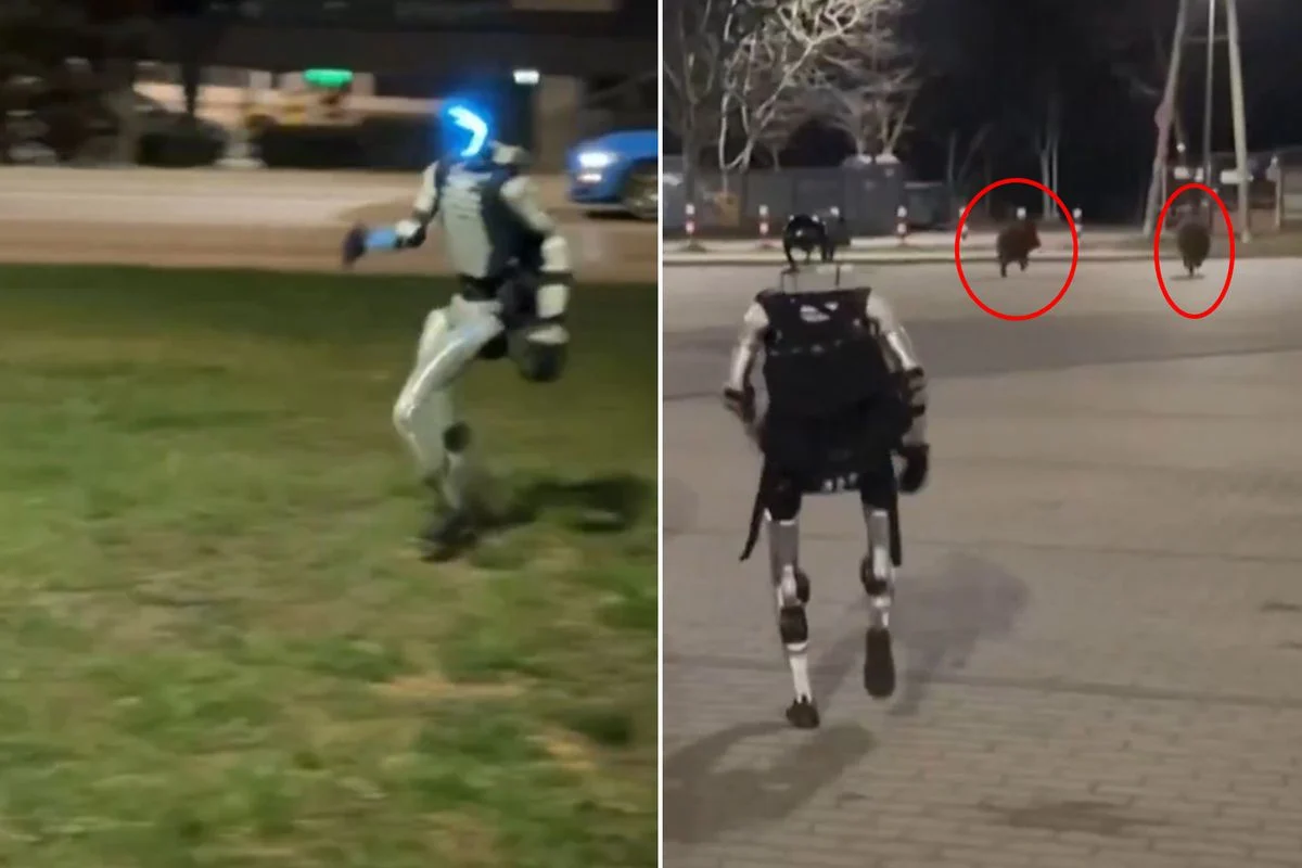 Görüntülerde, gece saatlerinde bir mahallede görülen bir grup yabani domuzun hızla hareket ettiği, hemen ardından ise sırtında ekipman bulunan insansı bir robotun onları takip ettiği görülüyor. Robotun kontrollü şekilde hayvanları yerleşim alanından uzaklaştırdığı anlar saniye saniye kaydedildi.