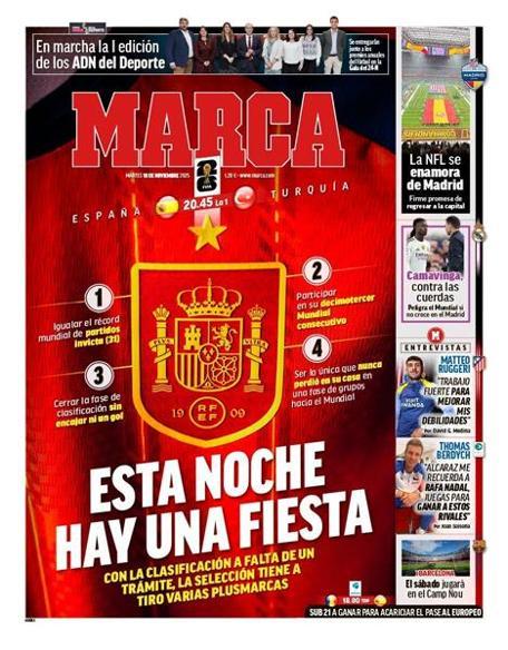 İspanya merkezli Marca gazetesi İspanya-Türkiye maçı öncesinde “Bu gece parti var” başlığıyla manşet hazırladı.
