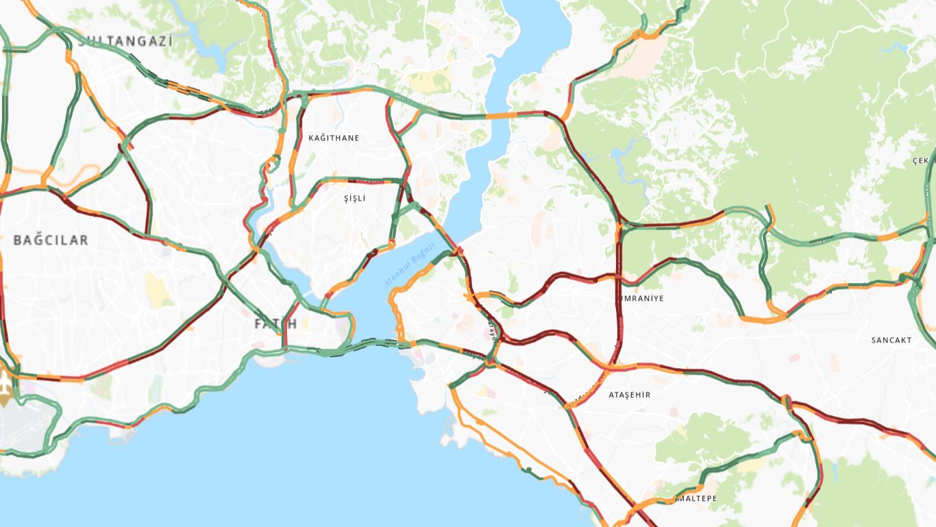 İstanbul Büyükşehir Belediyesi Trafik Yoğunluğu haritasına nazaran, saat 08.00 sıralarında Anadolu Yakası’nda yoğunluk yüzde 90, Avrupa Yakası’nda ise yüzde 69 düzeylerine kadar ulaştı.