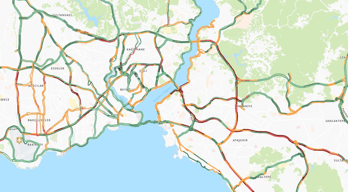 İstanbul Büyükşehir Belediyesi (İBB) trafik yoğunluk haritasına göre, saat 08.00 itibarıyla kent genelindeki yoğunluk oranı yüzde 63 olarak ölçüldü.
