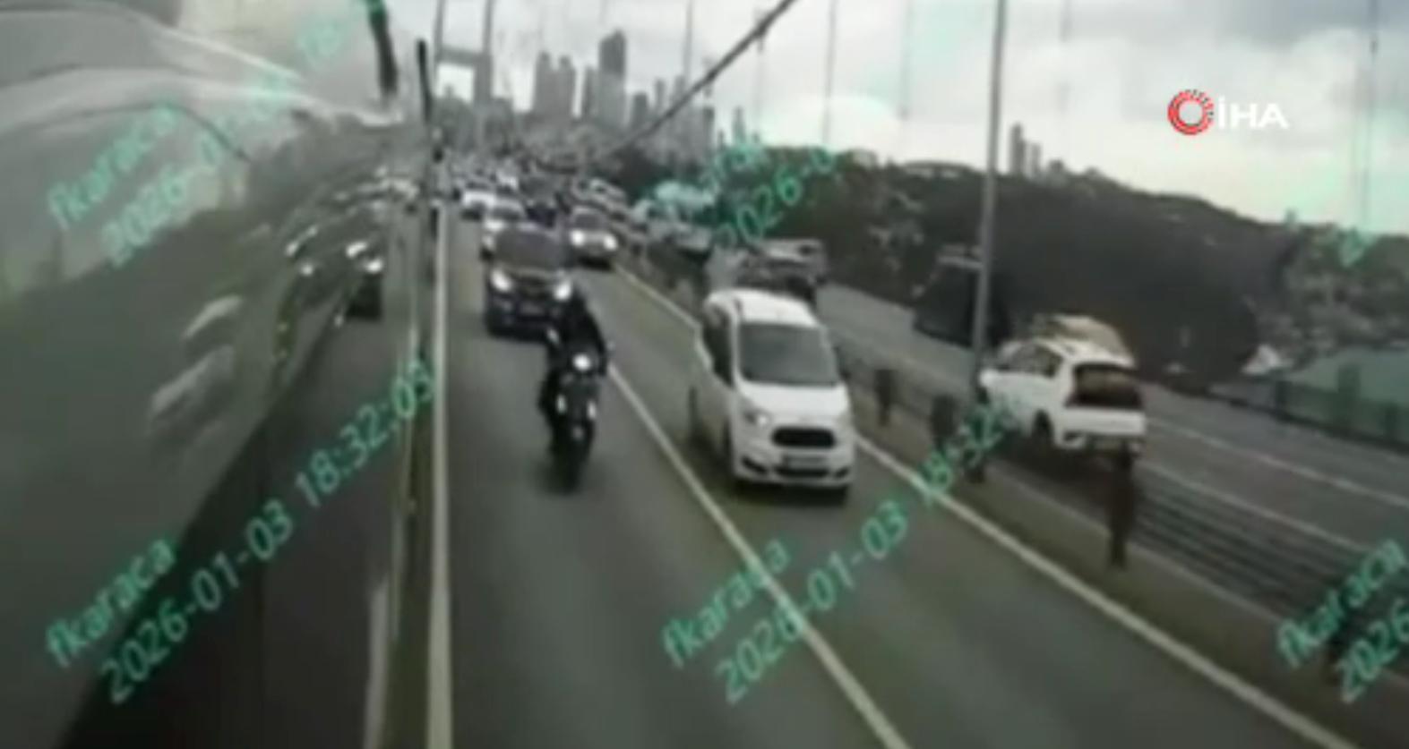 Köprü üzerinden geçen metrobüs sürücüsü yavaşlayarak motosiklet şoförlerine siper oldu.