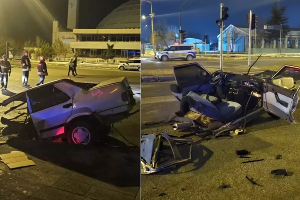 Otomobilin ortadan ikiye bölündüğü kaza sonrası yaralılar hastaneye kaldırıldı.