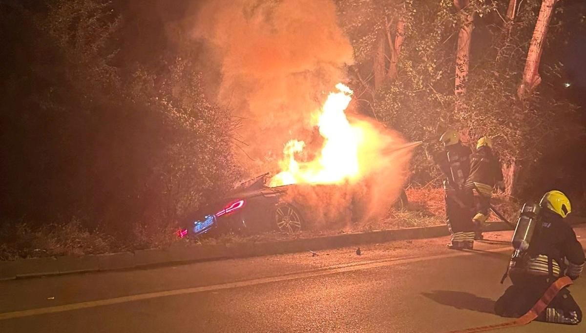 Kaza sonrası araba alev alırken, ihbar üzerine bölgeye itfaiye, polis ve sıhhat grubu sevk edildi.