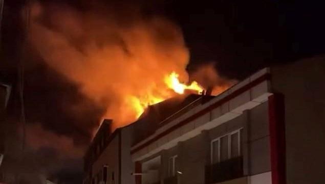 Kısa müddette büyüyen alevler yan taraftaki binalara da sıçradı. İhbar üzerine olay yerine itfaiye ve polis takımları sevk edildi.