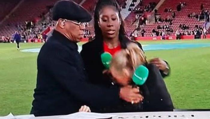 İngiltere’de ITV’nin sunucularından biri olan Laura Woods, İngiltere’nin Gana ile oynadığı hazırlık maçının yayınının açılış anlarını sunarken Asante ve Wright ile birlikte çalışıyordu.