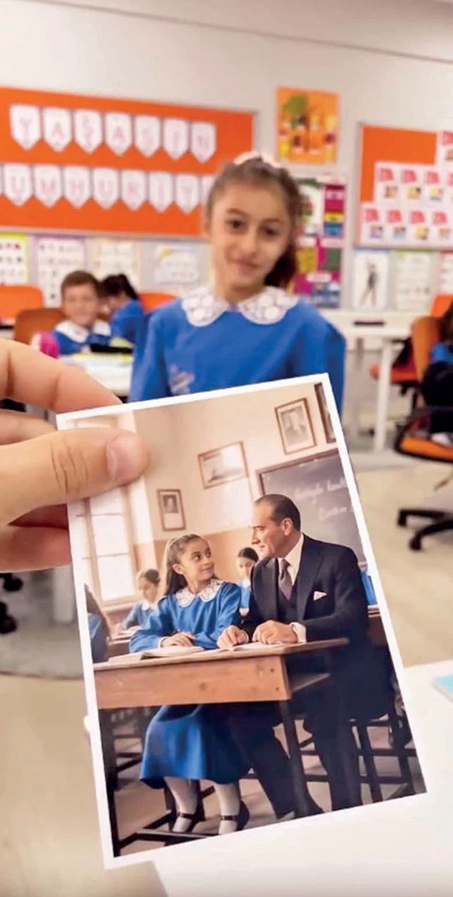 Cumhuriyet Bayramı kapsamında hazırlanan özel bir çalışmada, yapay zekâ desteğiyle oluşturulan görsellerde öğrenciler Atatürk’le birlikte yürürken, el ele tutuşurken ya da onun omzunda sevgiyle yer alırken tasvir edildi. Bu çalışma, hem öğrenciler hem de veliler tarafından büyük beğeni topladı.
