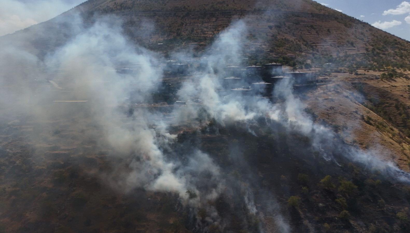 İl Emniyet Müdürlüğü’ne bağlı TOMA araçları da destek olarak yangını söndürme çalışmalarına katılırken, gruplar alevlerin villalara ulaşmaması için ağır gayret sarf etti.