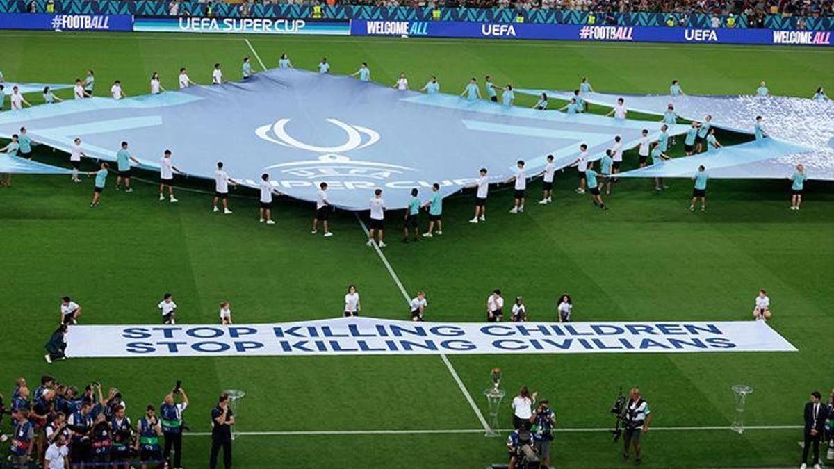 Bu arada UEFA, PSG – Tottenham maçı öncesinde “Çocukları ve sivilleri öldürmeyi durdurun” yazılı pankart açtı. Pankart toplumsal medyada gündem olurken tekrar İsrail’in isminin kullanılmaması dikkat çekti.
