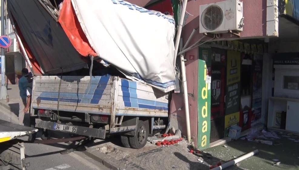 İstanbul Üsküdar’da denetimden çıkan kamyonet, bir iş yerine girdi.