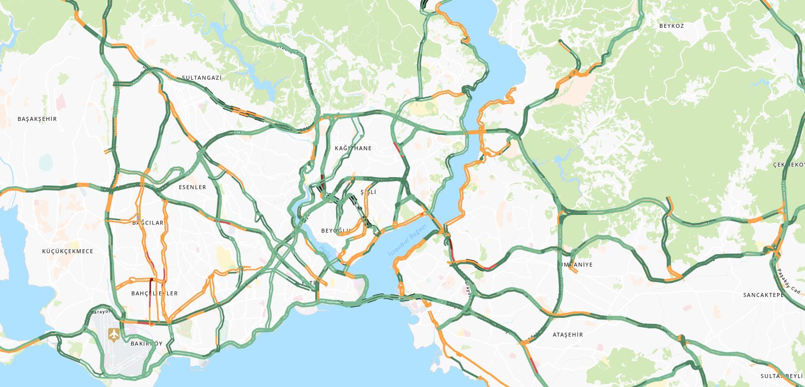 İstanbul Büyükşehir Belediyesi (İBB) Cep Trafik uygulamasına nazaran kent genelindeki trafik yoğunluğu, 09.40 prestijiyle yüzde 31 olarak ölçüldü.