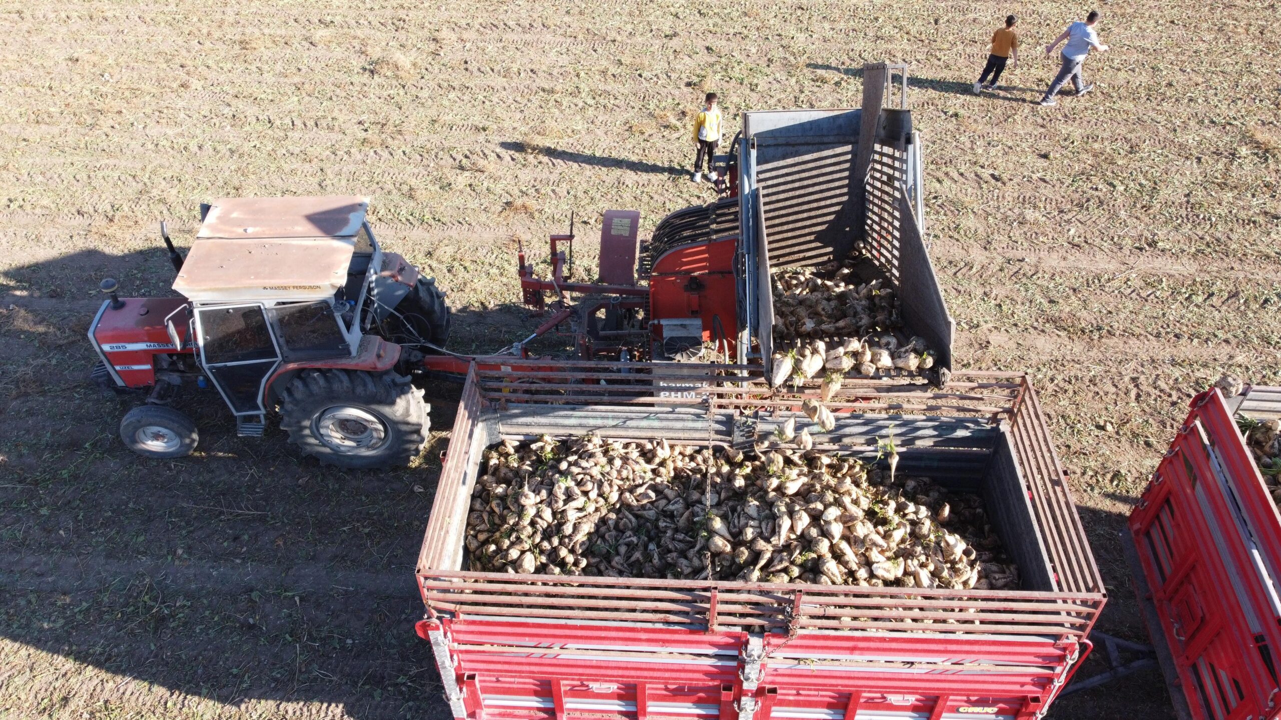 Türkiye’nin en geç hasat noktalarından birisi olan Yozgat’ın Sorgun ilçesinde çiftçiler tarlalardaki pancarları sökmeye devam ediyor. Yaklaşık 6 aylık emeğin eseri olan pancarlar, sökülerek bölgedeki şeker fabrikalarına taşınıyor. Çiftçilerin şiddetli mesaisi drone ile görüntülendi.