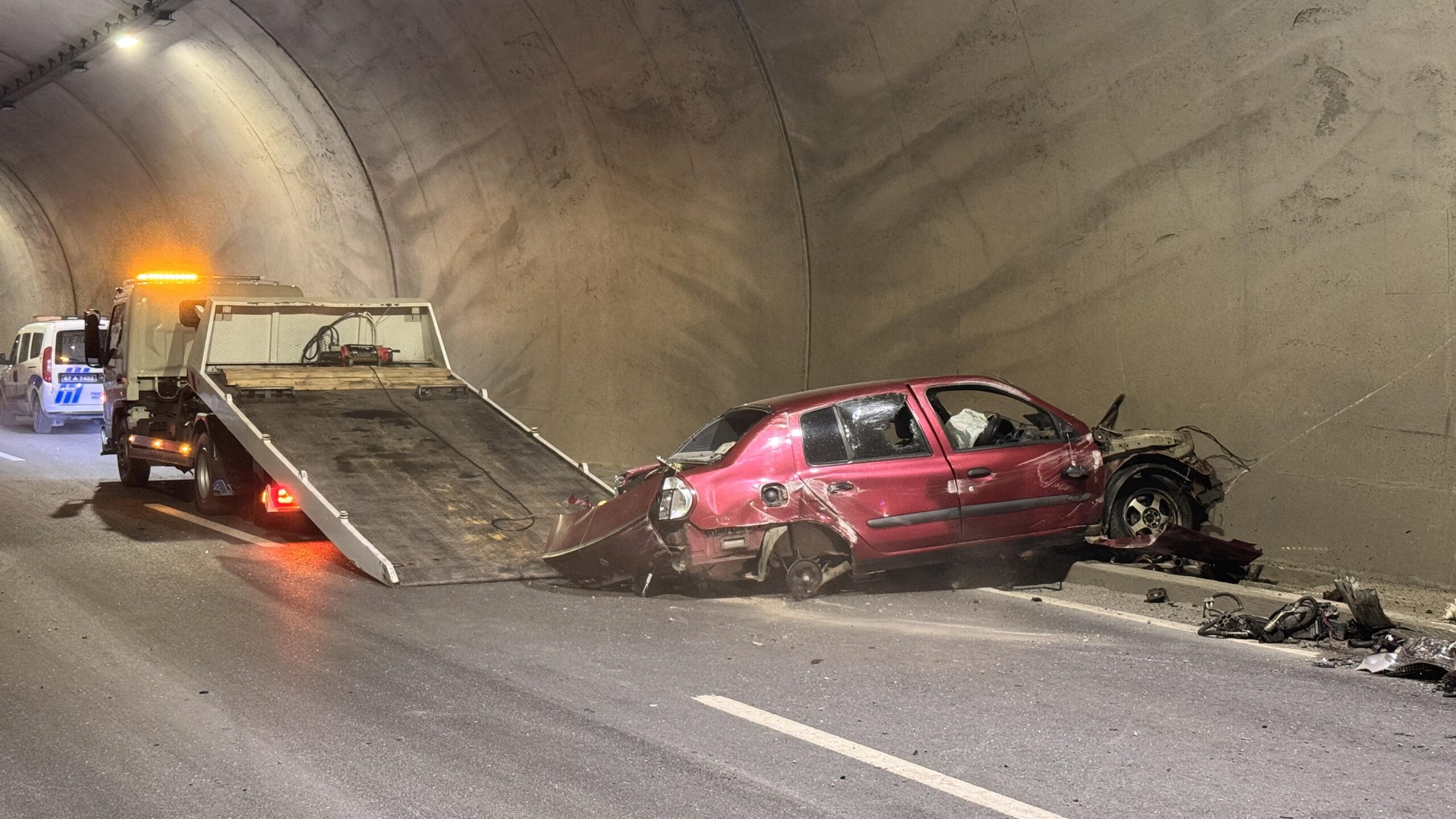 Zonguldak’ta Kilimli ilçesi ile merkezi birbirine bağlayan Uzunkum Tüneli’nde M.A. idaresindeki araba, şoförünün direksiyon hakimiyetini kaybetmesi sonucu tünel duvarına çarptı. Yoldan geçen öbür şoförlerin ihbarı üzerine olay yerine polis, sıhhat ve itfaiye grupları sevk edildi.